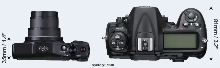 Going beyond this snapshot of core features and characteristics, what are the differences between the Canon PowerShot SX710 HS and the Nikon D300S? Which one should you buy? Read on to find out how these two cameras compare with respect to their body size, their imaging sensors, their shooting features, their input-output connections, and their reception by expert reviewers.