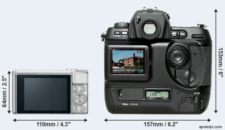 | 2. | Nikon D1H | 157 mm | 153 mm | 85 mm | 1100 g | 1200 | Y | Feb 2001 | US$ 4 499 | ebay.com | |
