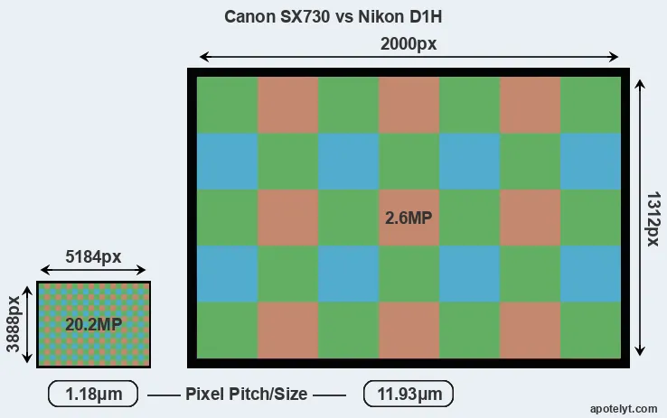 | Sensor Specs | Canon SX730 | Nikon D1H |