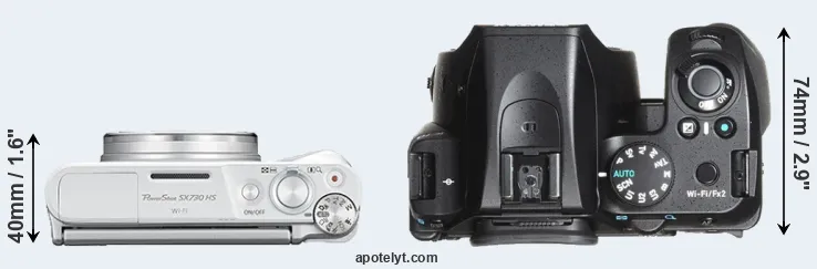 The above size and weight comparisons are to some extent incomplete and possibly misleading, as the SX730 has a lens built in, whereas the K-70 is an interchangeable lens camera that requires a separate lens. Attaching the latter will add extra weight and bulk to the setup.