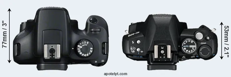 | 4. | Canon SL2 | 122 mm | 93 mm | 70 mm | 453 g | 650 | n | Jun 2017 | US$ 549 | ebay.com | |
