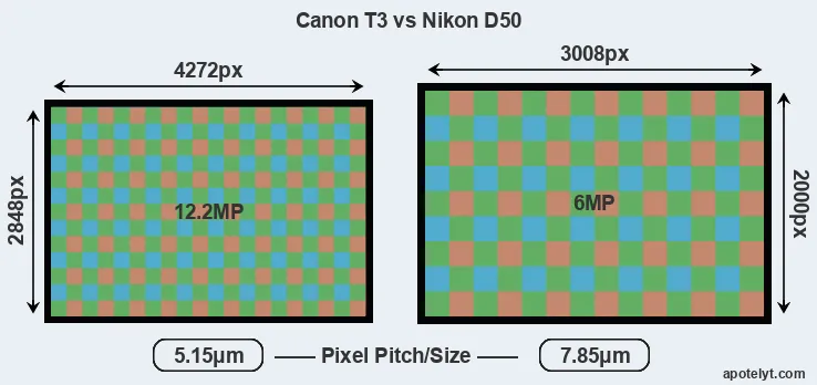 | Sensor Specs | Canon T3 | Nikon D50 |