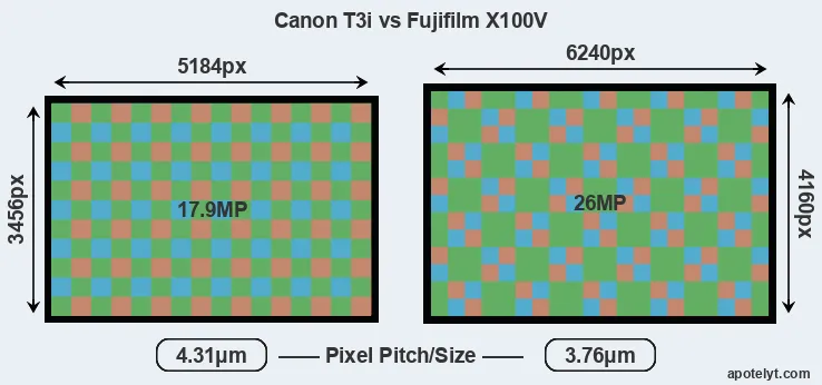 | Sensor Specs | Canon T3i | Fujifilm X100V |