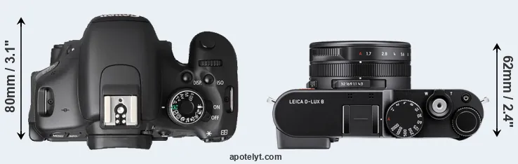 The above size and weight comparisons are to some extent incomplete and possibly misleading, as the D-LUX 8 has a lens built in, whereas the T3i is an interchangeable lens camera that requires a separate lens. Attaching the latter will add extra weight and bulk to the setup. You can compare the optics available for the T3i and their specifications in the Canon EF Lens Catalog.