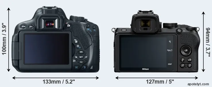 Specifications: Canon T4i vs Nikon Z50