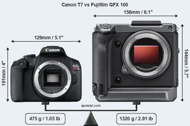 | Body Specs | Canon T7 | Fujifilm GFX 100 |