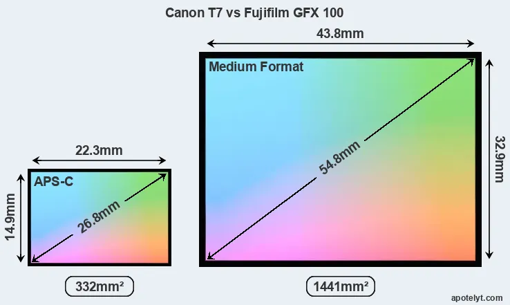 | Sensor Specs | Canon T7 | Fujifilm GFX 100 |