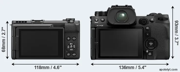 If the front view area (width x height) of the cameras is taken as an aggregate measure of their size, the Fujifilm X-H2 is considerably larger (58 percent) than the Canon V1. It is noteworthy in this context that the X-H2 is splash and dust-proof, while the V1 does not feature any corresponding weather-sealing.