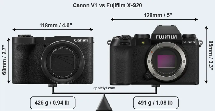 Specifications: Canon V1 vs Fujifilm X-S20