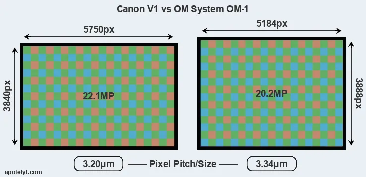 | Sensor Specs | Canon V1 | OM System OM-1 |