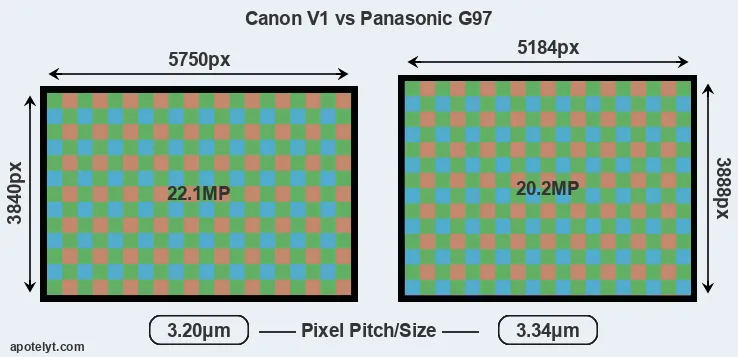 | Sensor Specs | Canon V1 | Panasonic G97 |