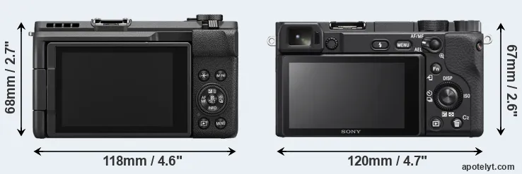 | 13. | Sony A6100 | 120 mm | 67 mm | 59 mm | 396 g | 420 | n | Aug 2019 | US$ 749 | ebay.com | |