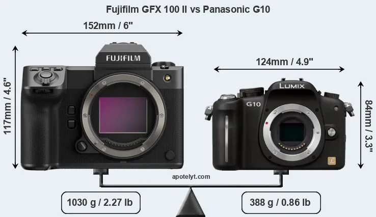 | Body Specs | Fujifilm GFX 100 II | Panasonic G10 |