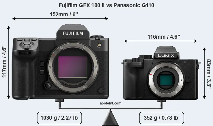 | Body Specs | Fujifilm GFX 100 II | Panasonic G110 |
