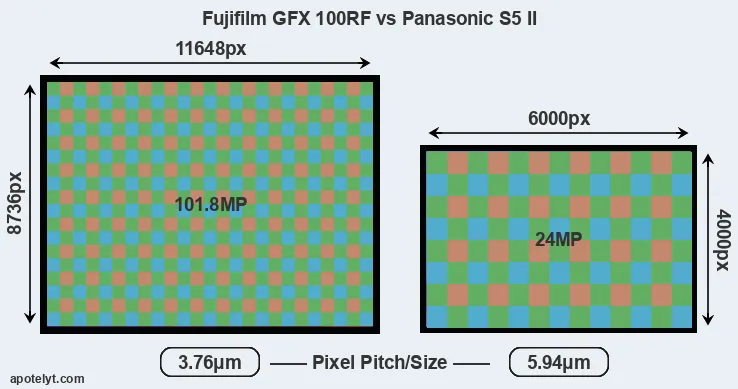 | Sensor Specs | Fujifilm GFX 100RF | Panasonic S5 II |