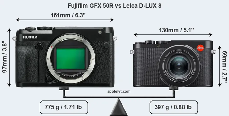 | Body Specs | Fujifilm GFX 50R | Leica D-LUX 8 |