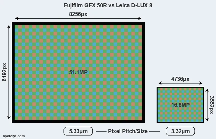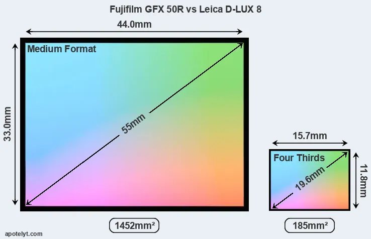 | Sensor Specs | Fujifilm GFX 50R | Leica D-LUX 8 |