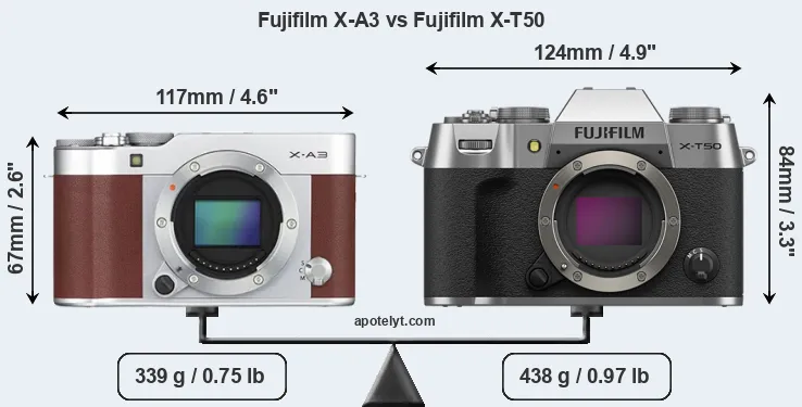 Size Fujifilm X-A3 vs Fujifilm X-T50