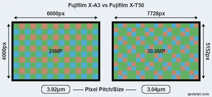 Fujifilm X-A3 and Fujifilm X-T50 sensor measures