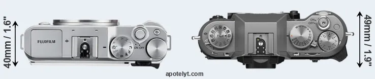 The above size and weight comparisons are to some extent incomplete since they do not consider the interchangeable lenses that both of these cameras require. In this particular case, both cameras feature the same lens mount, so that they can use the same lenses. You can compare the optics available in the Fujinon X Lens Catalog. Mirrorless cameras, such as the two under consideration, have the additional advantage of having a short flange to focal plane distance, which makes it possible to mount many lenses from other systems onto the camera via adapters.