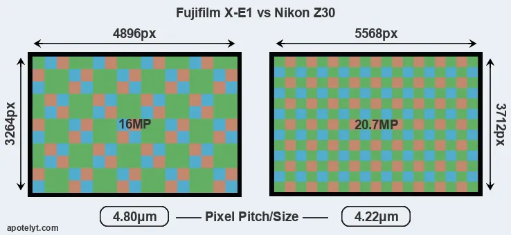 | Sensor Specs | Fujifilm X-E1 | Nikon Z30 |