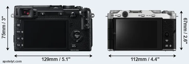 The above size and weight comparisons are to some extent incomplete since they do not consider the interchangeable lenses that both of these cameras require. In this particular case, both cameras feature the same lens mount, so that they can use the same lenses. You can compare the optics available in the Fujinon X Lens Catalog. Mirrorless cameras, such as the two under consideration, have the additional advantage of having a short flange to focal plane distance, which makes it possible to mount many lenses from other systems onto the camera via adapters.