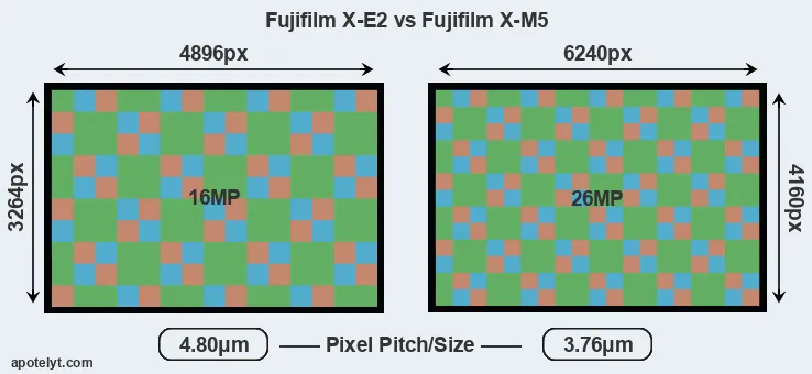 | Sensor Specs | Fujifilm X-E2 | Fujifilm X-M5 |