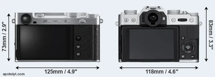 The above size and weight comparisons are to some extent incomplete since they do not consider the interchangeable lenses that both of these cameras require. In this particular case, both cameras feature the same lens mount, so that they can use the same lenses. You can compare the optics available in the Fujinon X Lens Catalog. Mirrorless cameras, such as the two under consideration, have the additional advantage of having a short flange to focal plane distance, which makes it possible to mount many lenses from other systems onto the camera via adapters.