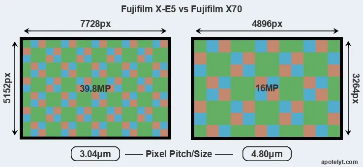 | Sensor Specs | Fujifilm X-E5 | Fujifilm X70 |
