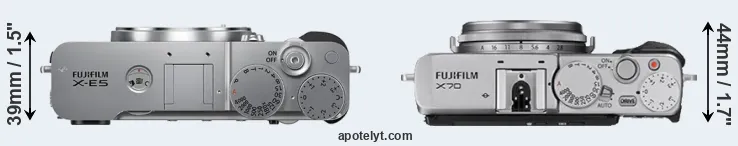 The above size and weight comparisons are to some extent incomplete and possibly misleading, as the X70 has a lens built in, whereas the X-E5 is an interchangeable lens camera that requires a separate lens. Attaching the latter will add extra weight and bulk to the setup. You can compare the optics available for the X-E5 and their specifications in the Fujinon X Lens Catalog.