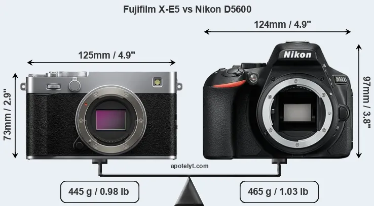 | Body Specs | Fujifilm X-E5 | Nikon D5600 |