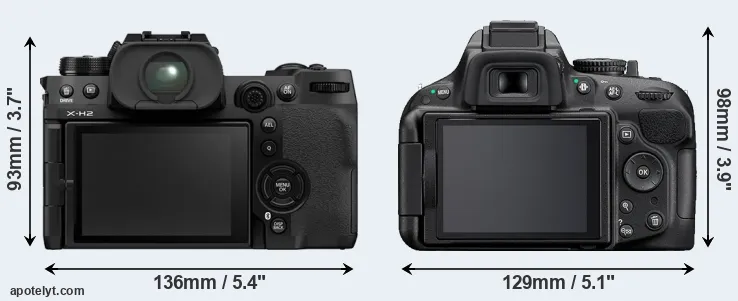 | Body Specs | Fujifilm X-H2 | Nikon D5200 |