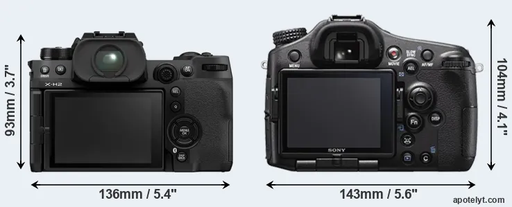 Going beyond this snapshot of core features and characteristics, what are the differences between the Fujifilm X-H2 and the Sony Alpha SLT-A77 II? Which one should you buy? Read on to find out how these two cameras compare with respect to their body size, their imaging sensors, their shooting features, their input-output connections, and their reception by expert reviewers.