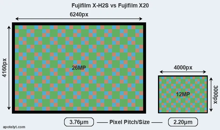 | Sensor Specs | Fujifilm X-H2S | Fujifilm X20 |