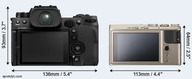 The above size and weight comparisons are to some extent incomplete and possibly misleading, as the XF10 has a lens built in, whereas the X-H2S is an interchangeable lens camera that requires a separate lens. Attaching the latter will add extra weight and bulk to the setup. You can compare the optics available for the X-H2S and their specifications in the Fujinon X Lens Catalog.