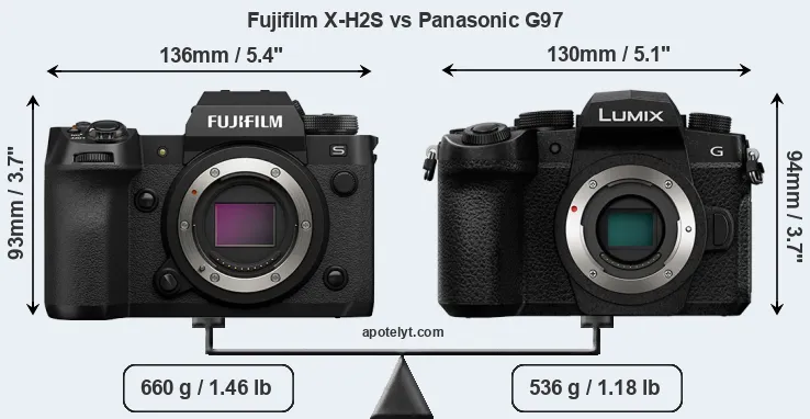 | Body Specs | Fujifilm X-H2S | Panasonic G97 |