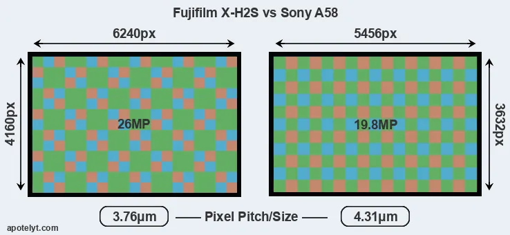 | Sensor Specs | Fujifilm X-H2S | Sony A58 |