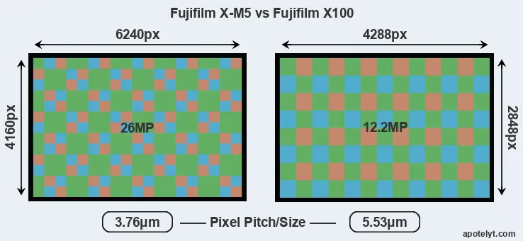 | Sensor Specs | Fujifilm X-M5 | Fujifilm X100 |