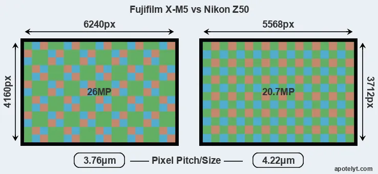 | Sensor Specs | Fujifilm X-M5 | Nikon Z50 |