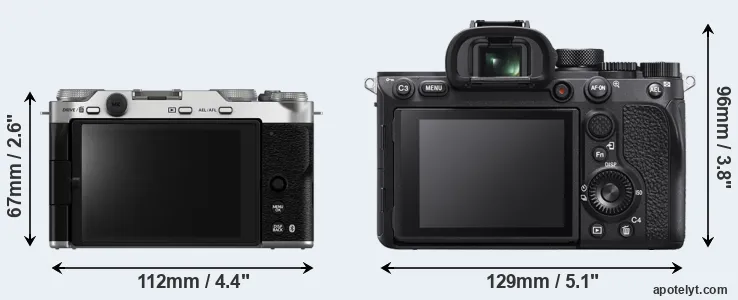 If the front view area (width x height) of the cameras is taken as an aggregate measure of their size, the Sony A7R IVA is considerably larger (65 percent) than the Fujifilm X-M5. Moreover, the A7R IVA is substantially heavier (87 percent) than the X-M5. It is noteworthy in this context that the A7R IVA is splash and dust-proof, while the X-M5 does not feature any corresponding weather-sealing.