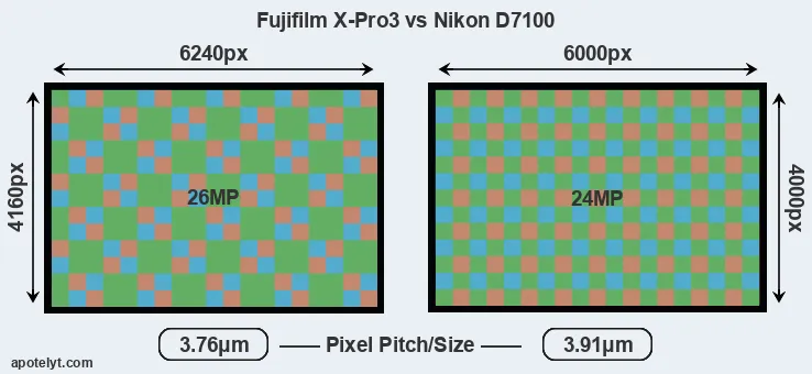 | Sensor Specs | Fujifilm X-Pro3 | Nikon D7100 |