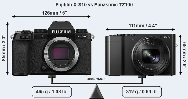 | Body Specs | Fujifilm X-S10 | Panasonic TZ100 |