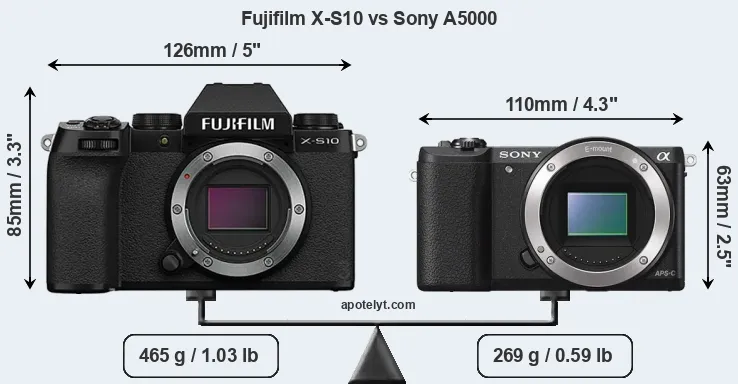 Specifications: Fujifilm X-S10 vs Sony A5000