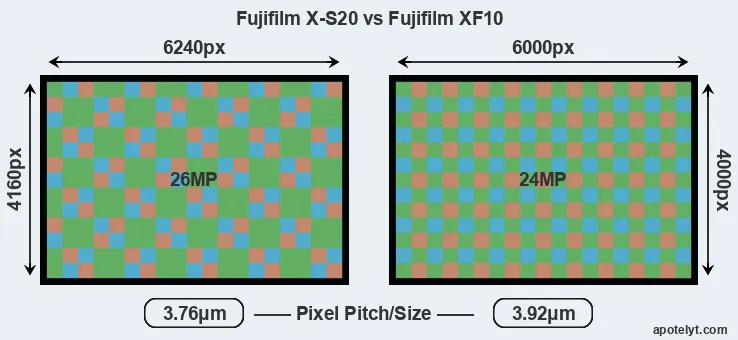 | Sensor Specs | Fujifilm X-S20 | Fujifilm XF10 |