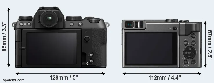 The above size and weight comparisons are to some extent incomplete and possibly misleading, as the TZ90 has a lens built in, whereas the X-S20 is an interchangeable lens camera that requires a separate lens. Attaching the latter will add extra weight and bulk to the setup. You can compare the optics available for the X-S20 and their specifications in the Fujinon X Lens Catalog.