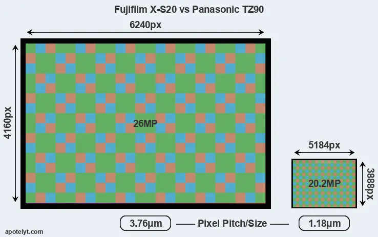 | Sensor Specs | Fujifilm X-S20 | Panasonic TZ90 |