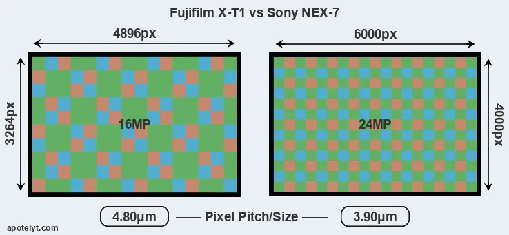 Fujifilm X-T1 and Sony NEX-7 sensor measures