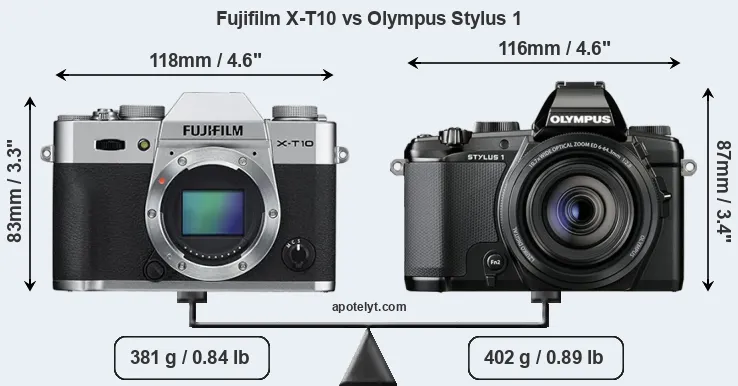 Size Fujifilm X-T10 vs Olympus Stylus 1