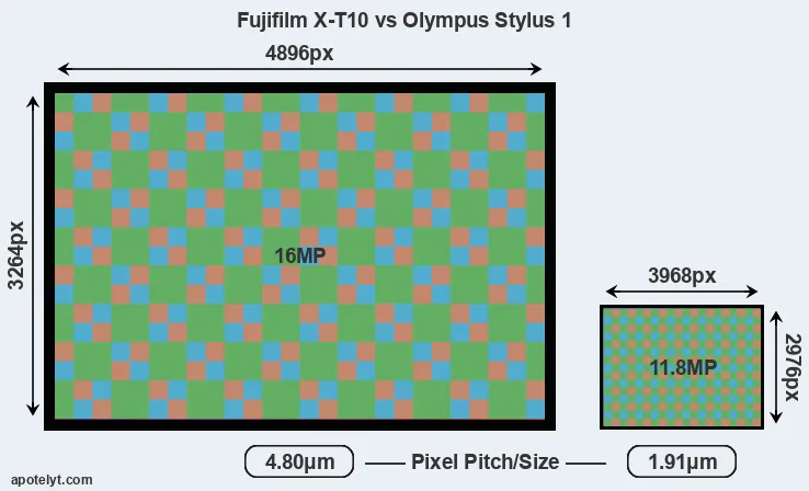 Fujifilm X-T10 and Olympus Stylus 1 sensor measures