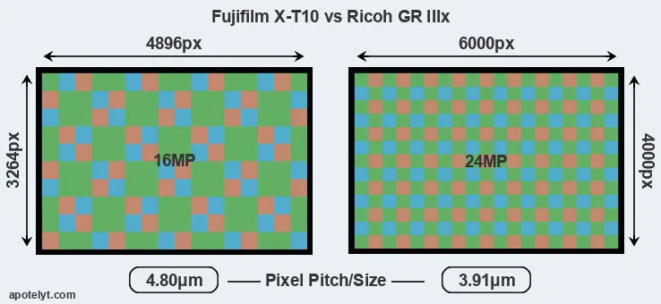 | Sensor Specs | Fujifilm X-T10 | Ricoh GR IIIx |